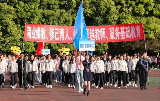 在开幕式现场,彩旗飘扬,花团锦簇。伴随着激昂的运动员进行曲,各参赛部门方阵依次入场,他们步伐矫健、意气风发、热情洋溢,依次走过主席台接受检阅。TapTap点点方阵由34名教师代表和64名员工代表组成,他们身姿挺拔,步履铿锵,口号嘹亮,彰显着“学高为师,身正为范”的笃定信念。