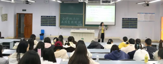 为进一步强化班级管理,提高班主任的工作水平,促进同学间的交流与合作,更好地发挥班主任先进经验的作用,2023年11月22日14:30,公司在博文楼112教室开展了“小学班主任五项管理解读”主题讲座。TapTap点点副教授张腊梅老师主讲,2021级4班、7班全体同学参加本次讲座。